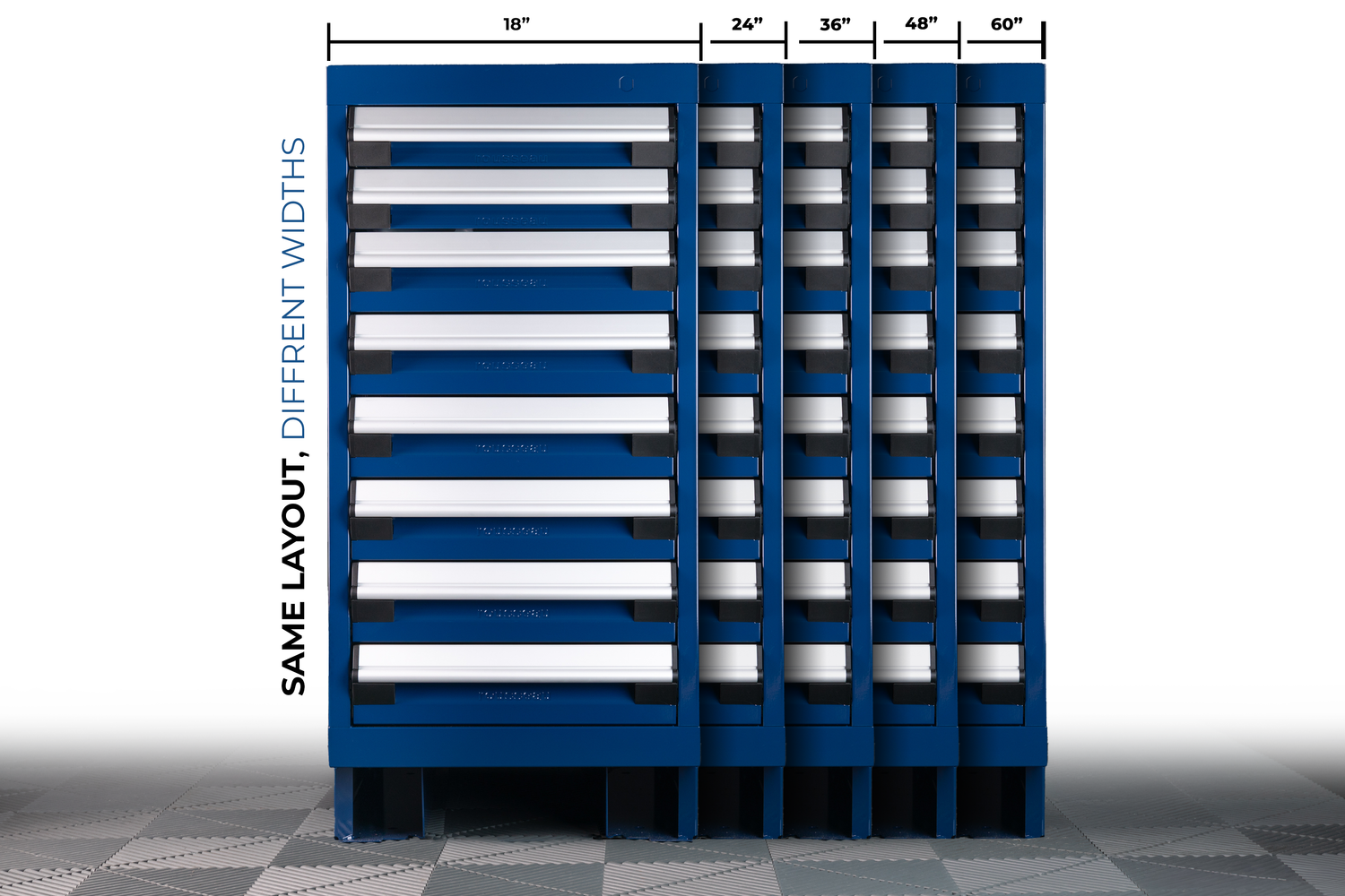Usually, you can only open one drawer at a time so your toolbox doesn't fall over. If you have a cabinet array, however, you won't have this problem, and it's much more efficient.